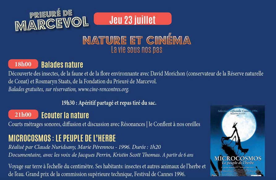 Pour découvrir le programme de cette soirée sous les étoiles organisées par les Cinérencontres, cliquez sur l’image ci-dessous: